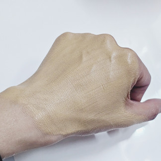 2. 按 **1:1比例** 在手背擠出兩款粉底